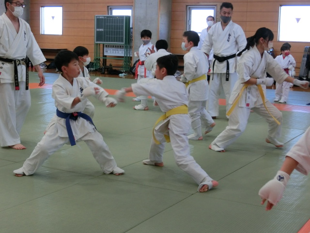 ・組手稽古を選択する者は、各自キックミット一組とサポーター類を準備してください。